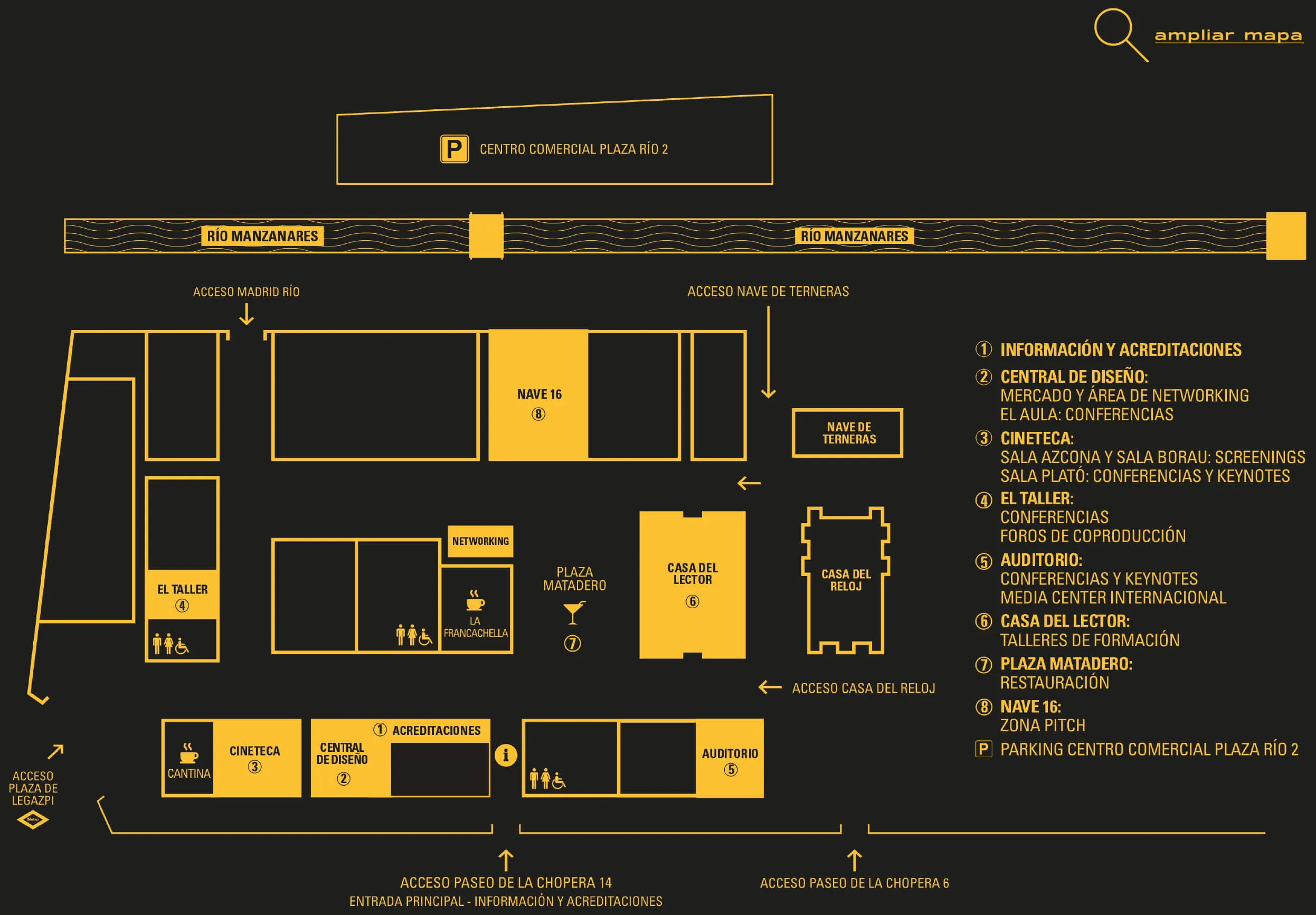 Matadero Madrid está situado en el distrito de Arganzuela, en el barrio de Legazpi, junto a Madrid Río.